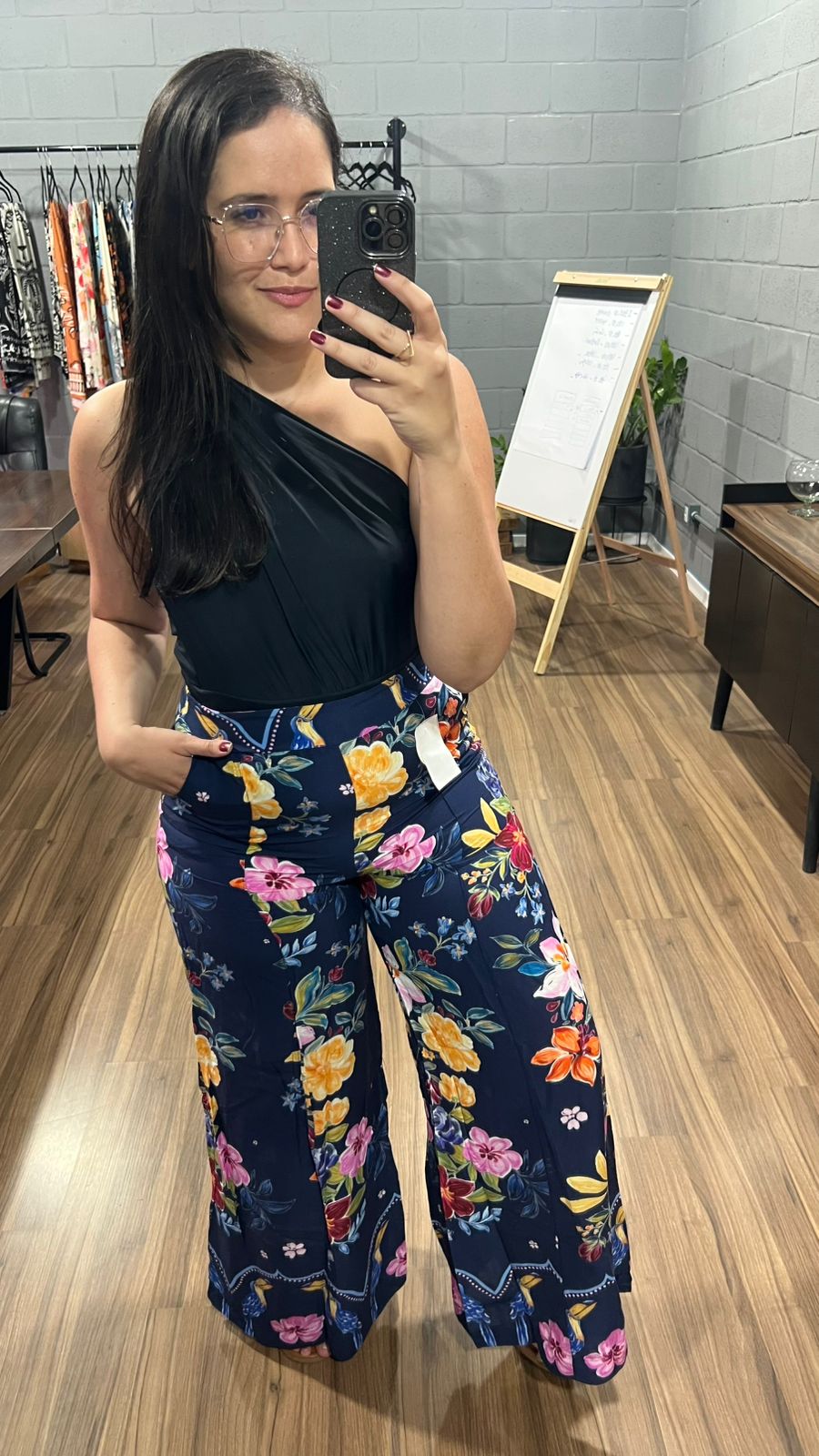 Feita com tecido leve e confortável, ela possui cintura alta, cós ajustado e um corte que alonga a silhueta. Perfeita para quem busca um look sofisticado, moderno e ao mesmo tempo confortável — seja para o trabalho, passeio ou ocasiões especiais.