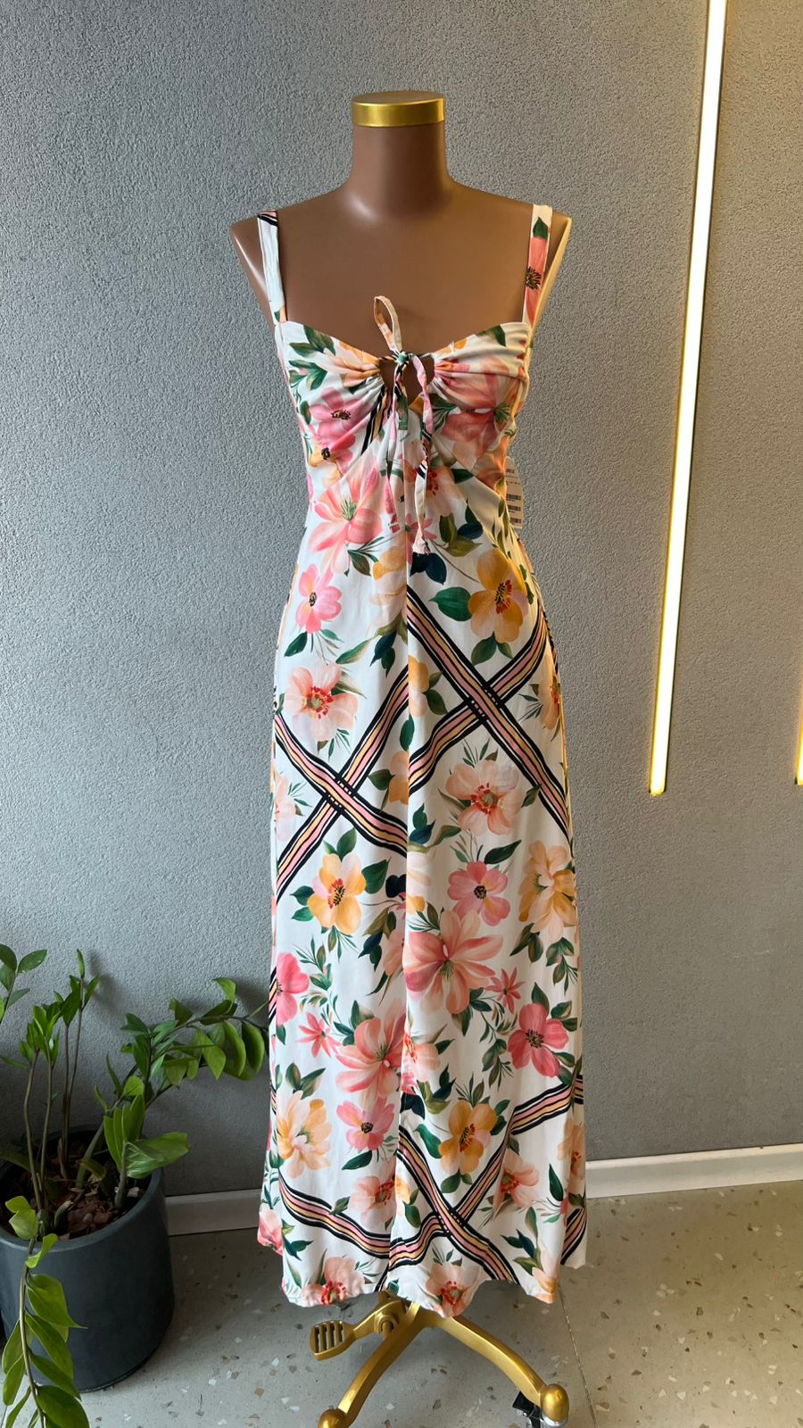 O Vestido Bali é aquele modelo que traz o frescor das tendências com um toque clássico que nunca sai de moda. Sua estampa exclusiva, inspirada nas paisagens tropicais e nos tons da estação, valoriza o visual com leveza e muita sofisticação.