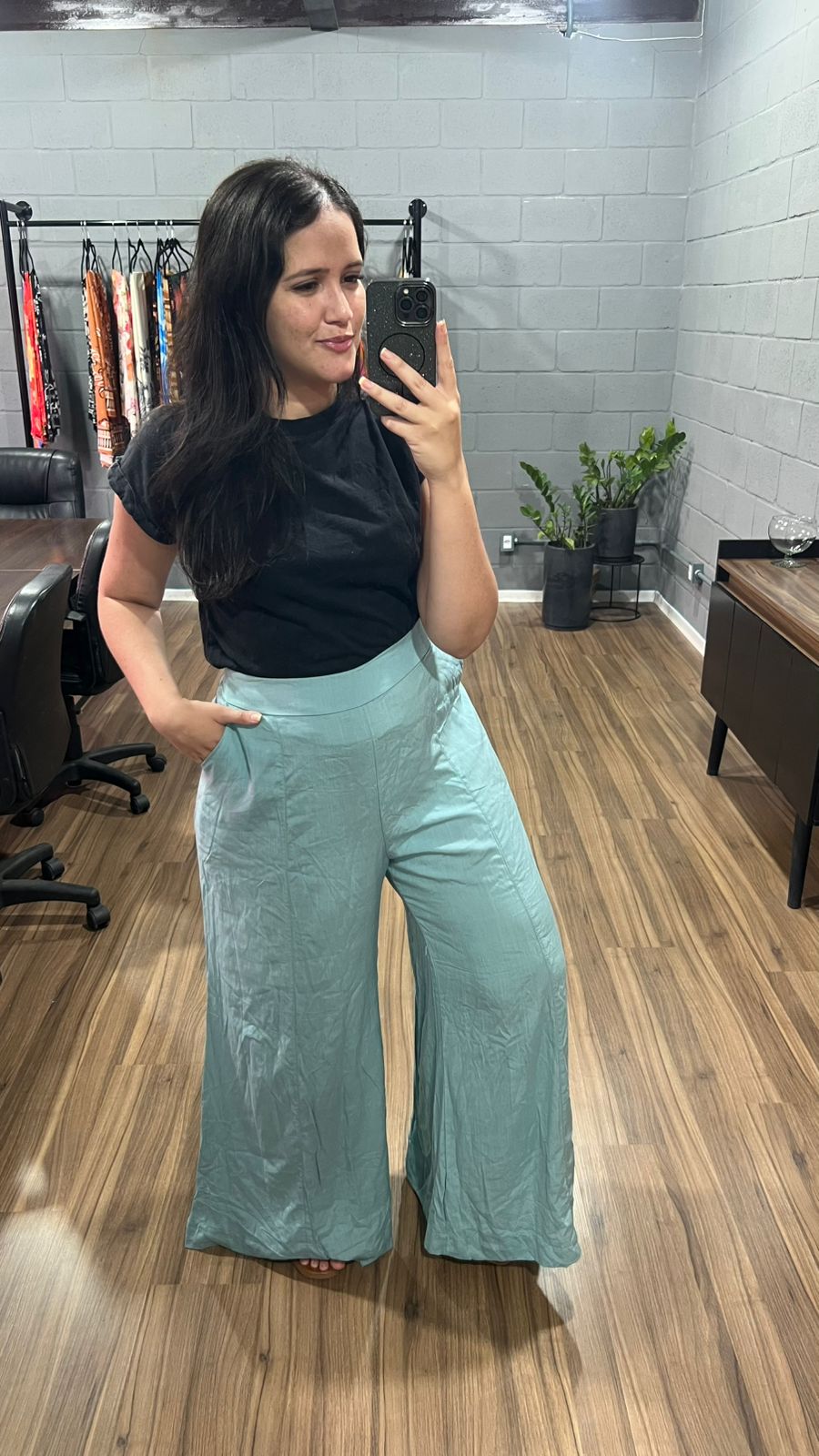 Feita com tecido leve e confortável, ela possui cintura alta, cós ajustado e um corte que alonga a silhueta. Perfeita para quem busca um look sofisticado, moderno e ao mesmo tempo confortável — seja para o trabalho, passeio ou ocasiões especiais.
